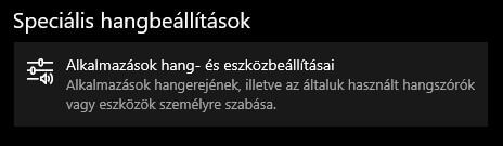 Tálca Jobb egérgomb Hangbeállítások megnyitása Alkalmazások hang- & eszközbeállításai