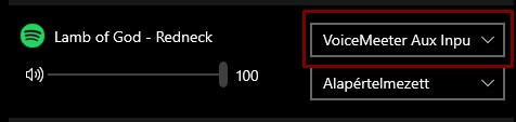 Jelenleg minden alkalmazásunk a VoiceMeeter Input hangeszközt használja, ahhoz hogy a későbbiekben egy alkalmazás hangját ki tudjuk hagyni a VOD-ból, a másodlagos VoiceMeeter Aux Input hangeszközünkre kell irányítani