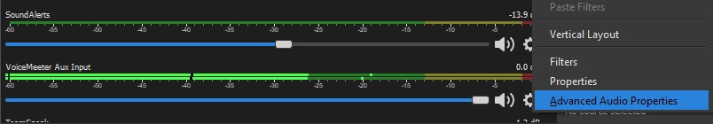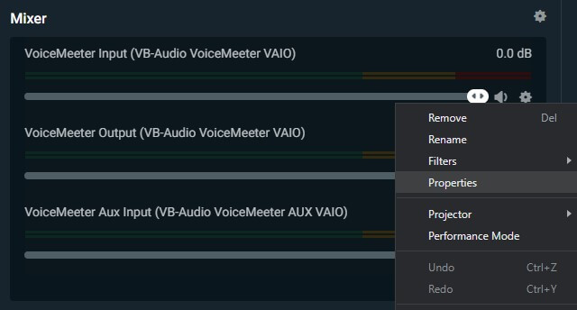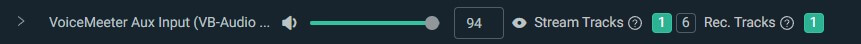 Lehetőségünk van megadott hangeszközöket letiltani különböző hangsávokról, így fogjuk letiltani a VoiceMeeter Aux Input hangeszközünket az általunk a Twitch VOD számára megjelölt hangsávról.
