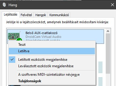 Input az alapértelmezett hangeszközünk, minden újonnan